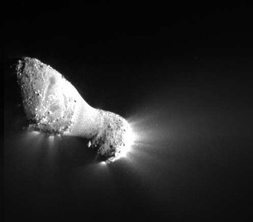 - Gdy kometa zbliża się do gwiazdy z jej powierzchni, pod wpływem temperatury, zaczyna parować woda rozrzucając przy okazji cząstki pyłu i tworząc majestatyczną smugę otaczającą skalne jądro.
